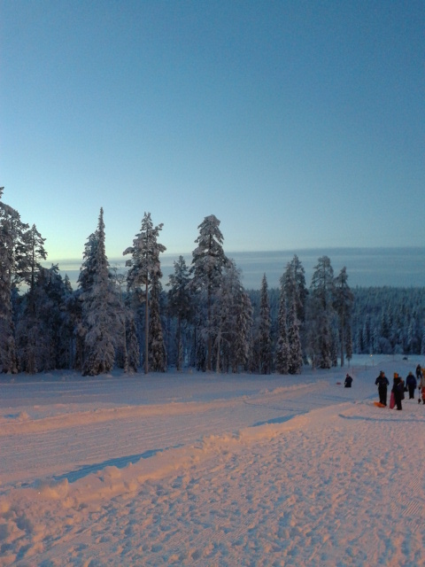 We were allocated bus No.1 (“One for Onederful!”) and we were met by the lovely Reps John, Chelsea and Ryan. They were our guides throughout the trip. It was two hours from the airport to our Hotel in Pyha but this journey was made shorter with Christmas stories and songs and a quick stop to collect our snow suits and boots. We even got to watch a DVD! Our room keys were handed out to us on the bus so when we arrived to our hotel we could go straight to our room to drop our bags and then go for dinner. We had a lovely meal that evening. After our meal it was about 9 o’clock at night but Caolach just had to get out into the snow! We pulled on our newly acquired snow suits and boots and went out into the night to throw some snow balls! That plan quickly went out the window because when we went outside of the hotel there was a hill, plus toboggans! Caolach would have stayed out all night but we had an early start so after an hour of slipping and sliding we called it a night!